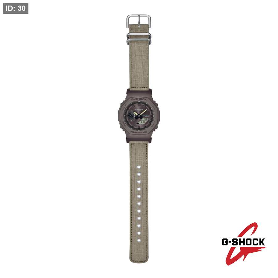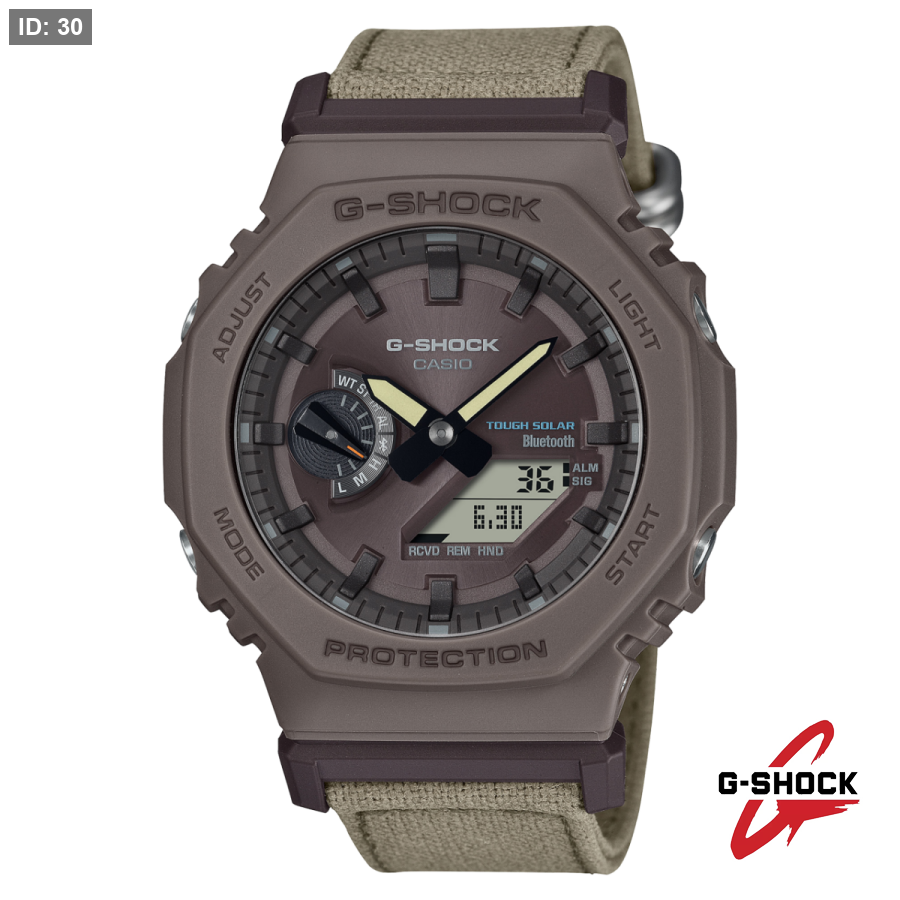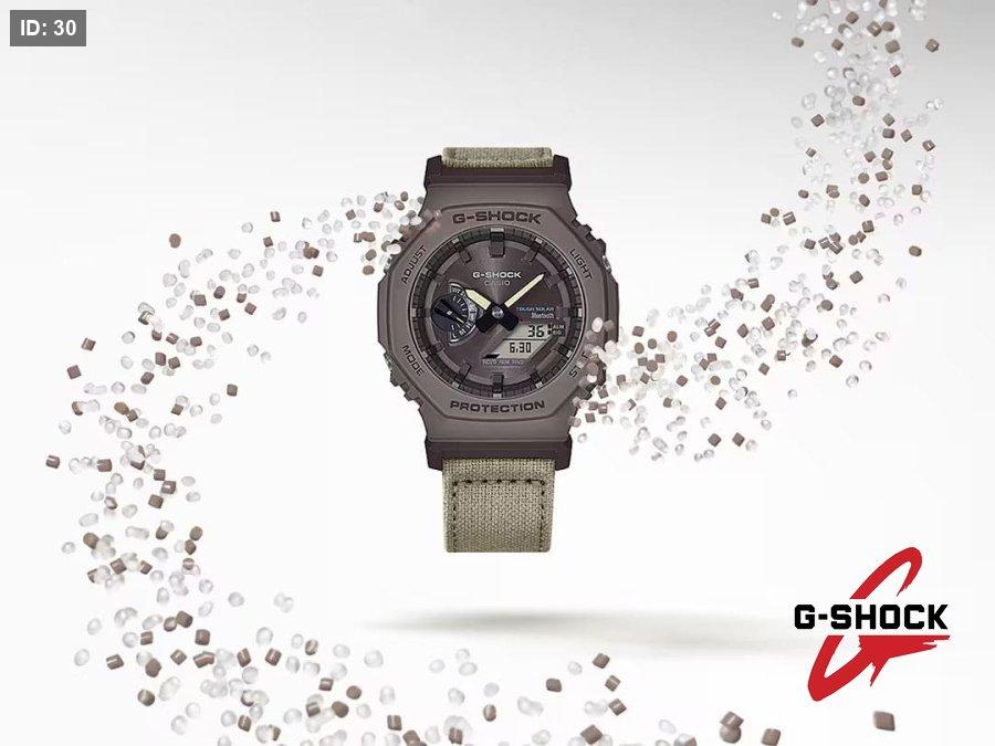 ننطلق من موديل GA-B2100 المزوّد بوظائف عملية مثل الاتصال بالهاتف الذكي Smartphone Link ونظام الشحن الشمسي Tough Solar، مع الحفاظ على الشكل الثماني الأضلاع الأيقوني لسلسلة GA-2100. بعد ذلك، تتم صناعة الأجزاء الأساسية من الرزين باستخدام راتنج حيوي (Bio-based Resin) مشتق من موارد عضوية متجددة، للمساعدة في الحد من انبعاثات ثاني أكسيد الكربون وتقليل الأثر البيئي.