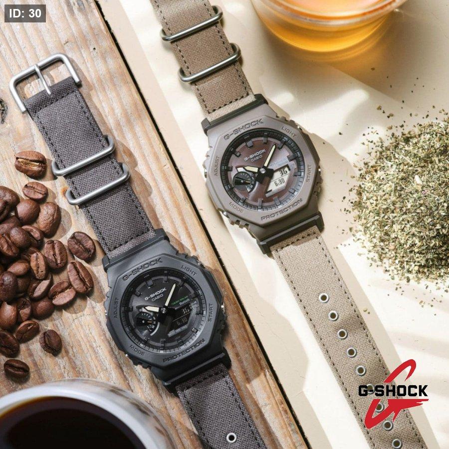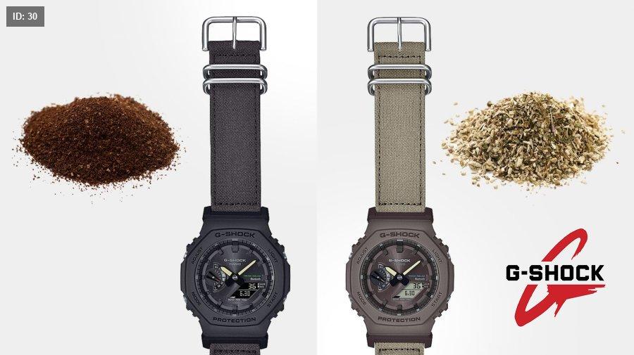 اللون البني الداكن لسوار موديل GA-B2100CT-1A5 يأتي من صبغة مستخرجة من القهوة، بينما اللون الكاكي الرمادي في موديل GA-B2100CT-5A يأتي من صبغة مستخرجة من نبات الإكيناسيا.