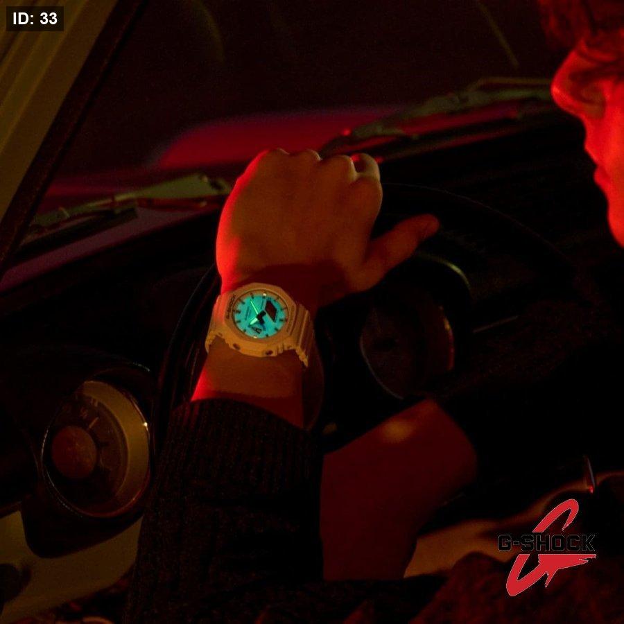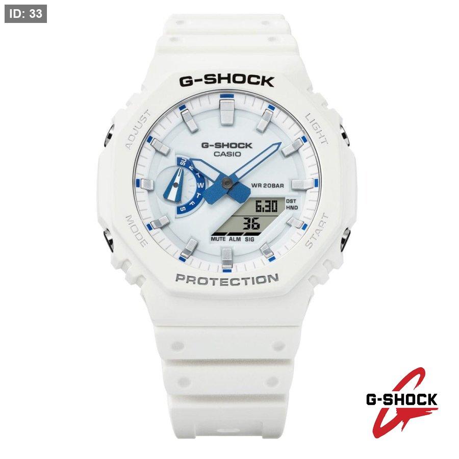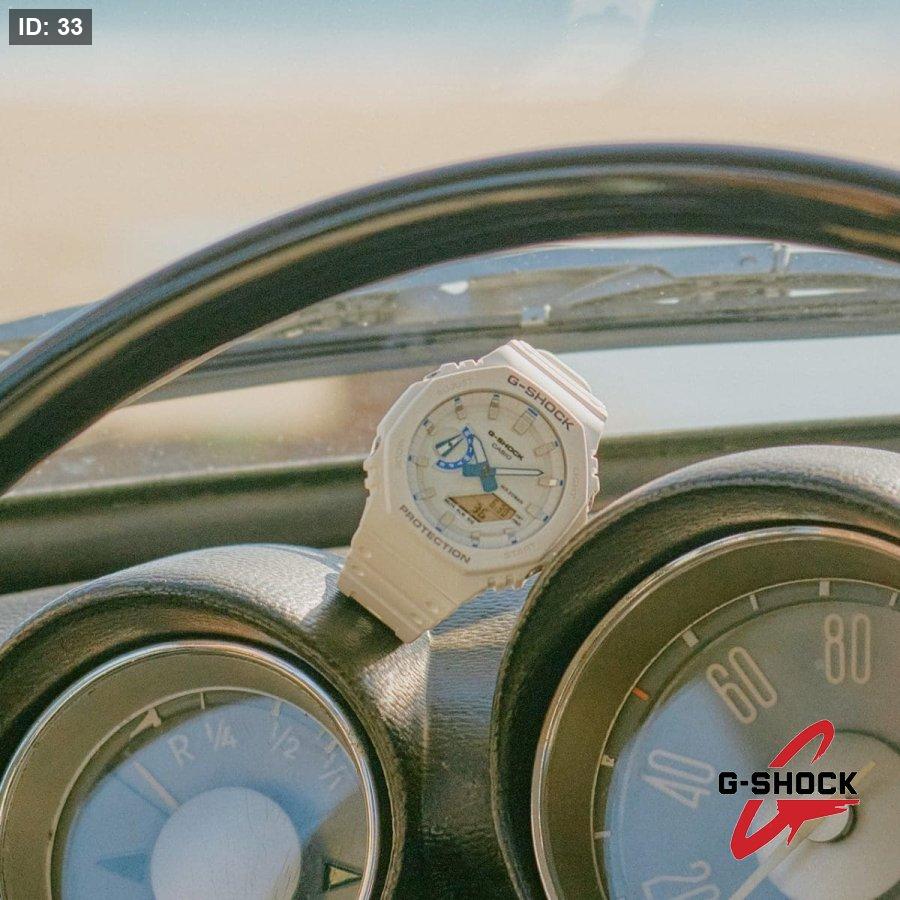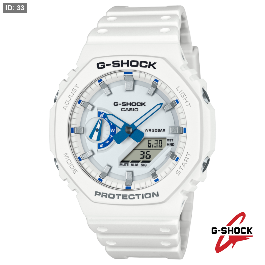استلهم إطلالتك من أجواء بحر الصيف مع ساعة G-SHOCK باللونين الأبيض والأزرق.