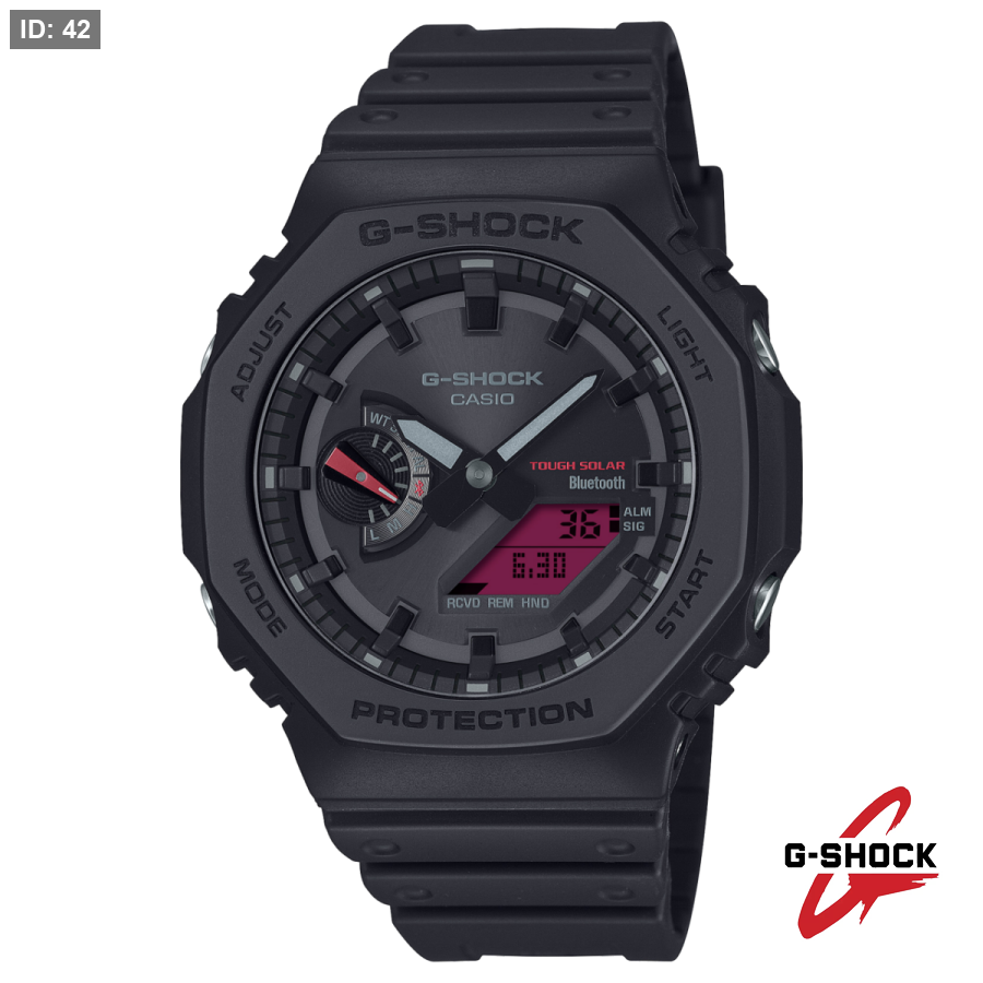 يتباين اللون الأحمر الحيوي عالي الكثافة في شاشة الـ LCD بشكل لافت مع الإطار والسوار والميناء باللون الأسود، ليمنحك رؤية أوضح وتصميماً أكثر جرأة وحدّة في المظهر.