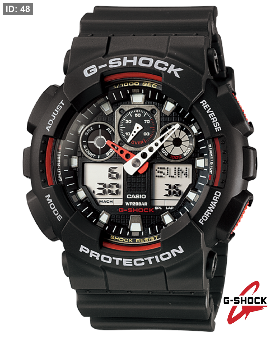 يعتمد التصميم الشهير في G-SHOCK ذو الثلاث نوافذ على ميناء تناظري في المنتصف تحيط به شاشتان رقميتان على الجانبين.