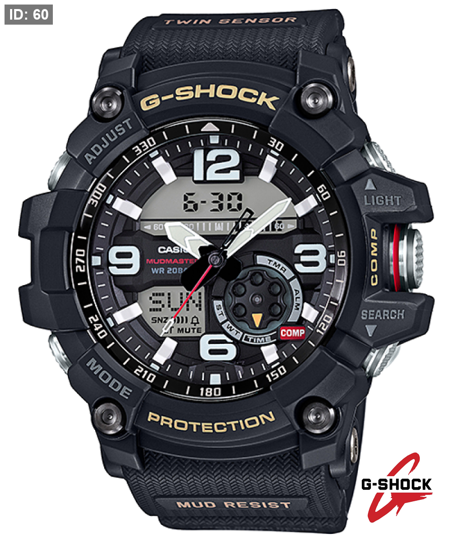 ساعة G-SHOCK Mudmaster Twin Sensor مصممة خصيصًا للعمل في البيئات القاسية المليئة بالغبار والوحل والأنقاض، مع تصميم عسكري شرس ووظائف عملية للميدان والرحلات.
