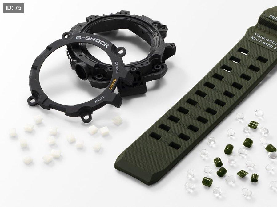 العلبة، الإطار، وسوار اليوريثان مصنوعين من راتنج حيوي (Bio-based Resin) من مصادر عضوية متجددة